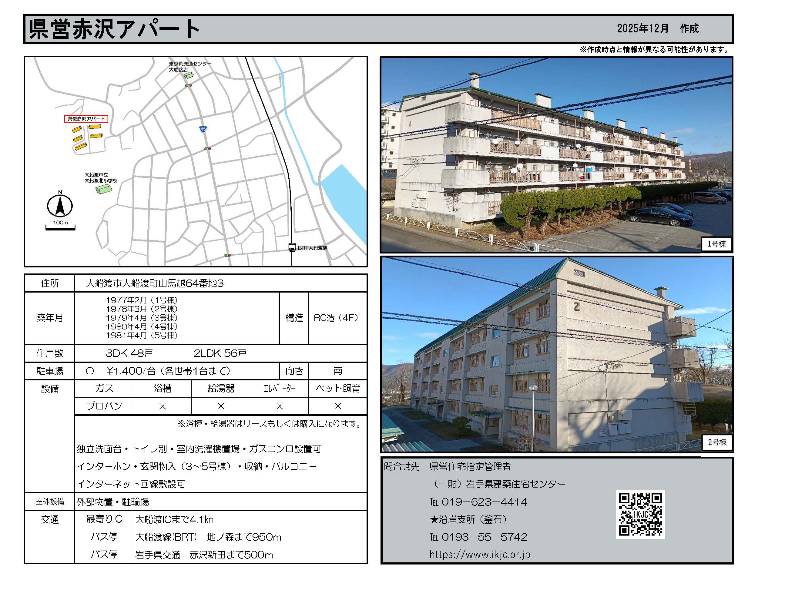 | 赤沢 | 4階建 | 2LDK 3DK | 無 | 大船渡市大船渡町山馬越64番地3 | ![]() |