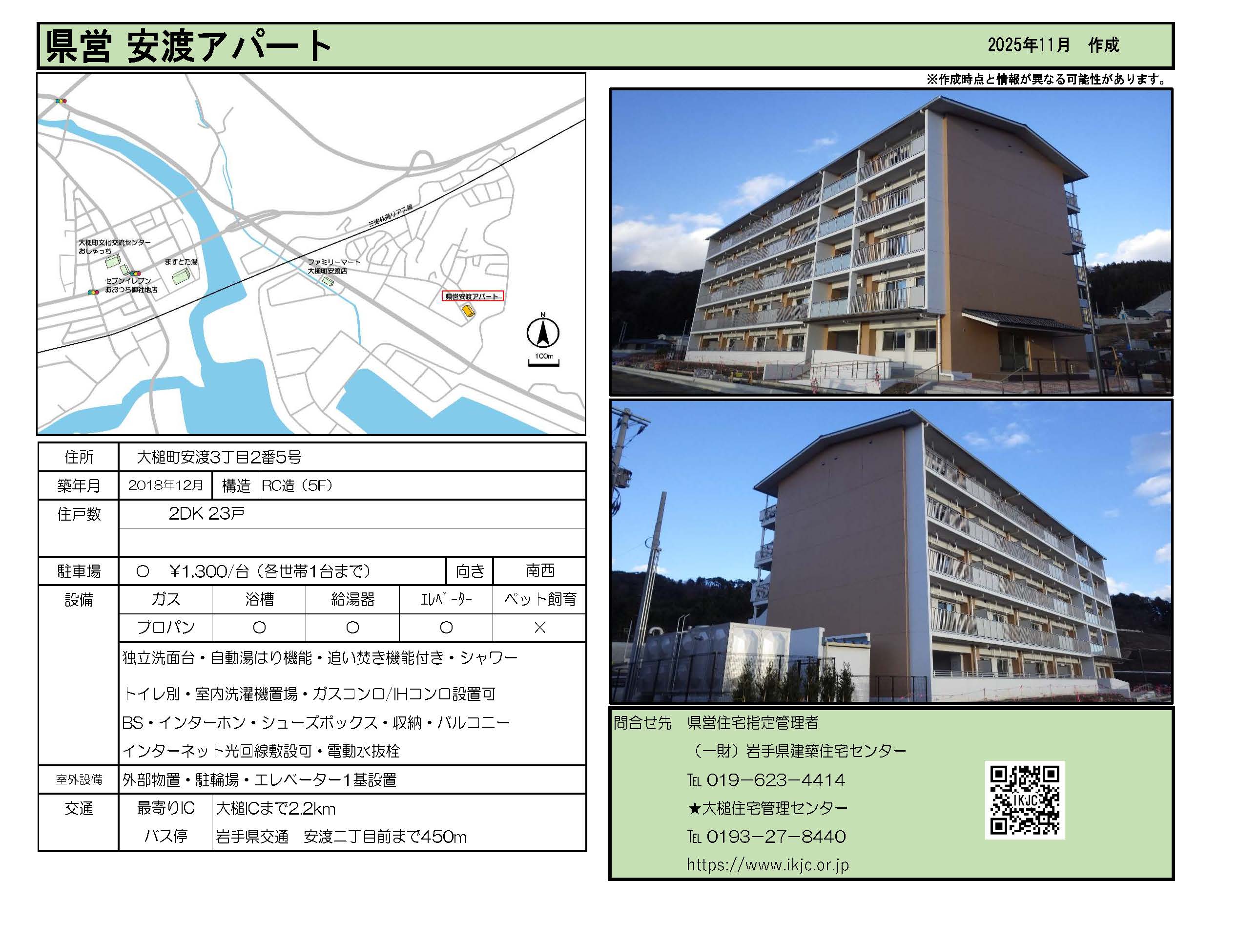 | 安渡 | 5階建 | 2DK | 有 | 大槌町安渡3丁目2番5号 | ![]() |