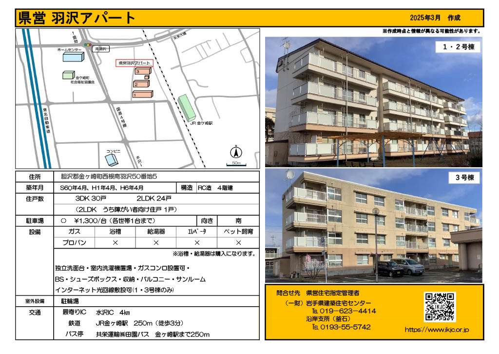 | 羽沢 | 4階建 | 2DK 2LDK 3DK | 無 | 金ヶ崎町西根南羽沢50番地5 | ![]() |
