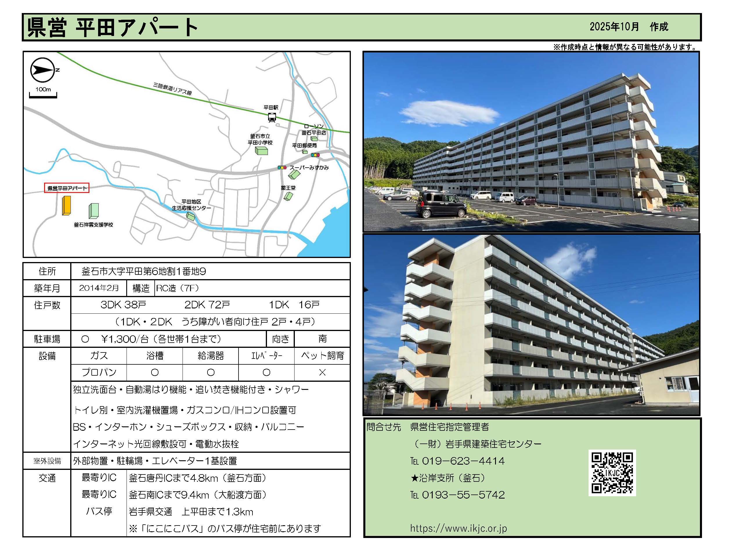 | 平田 | 7階建 | 1DK 2DK 3DK | 有 | 釜石市大字平田第6地割1番地9 | ![]() |