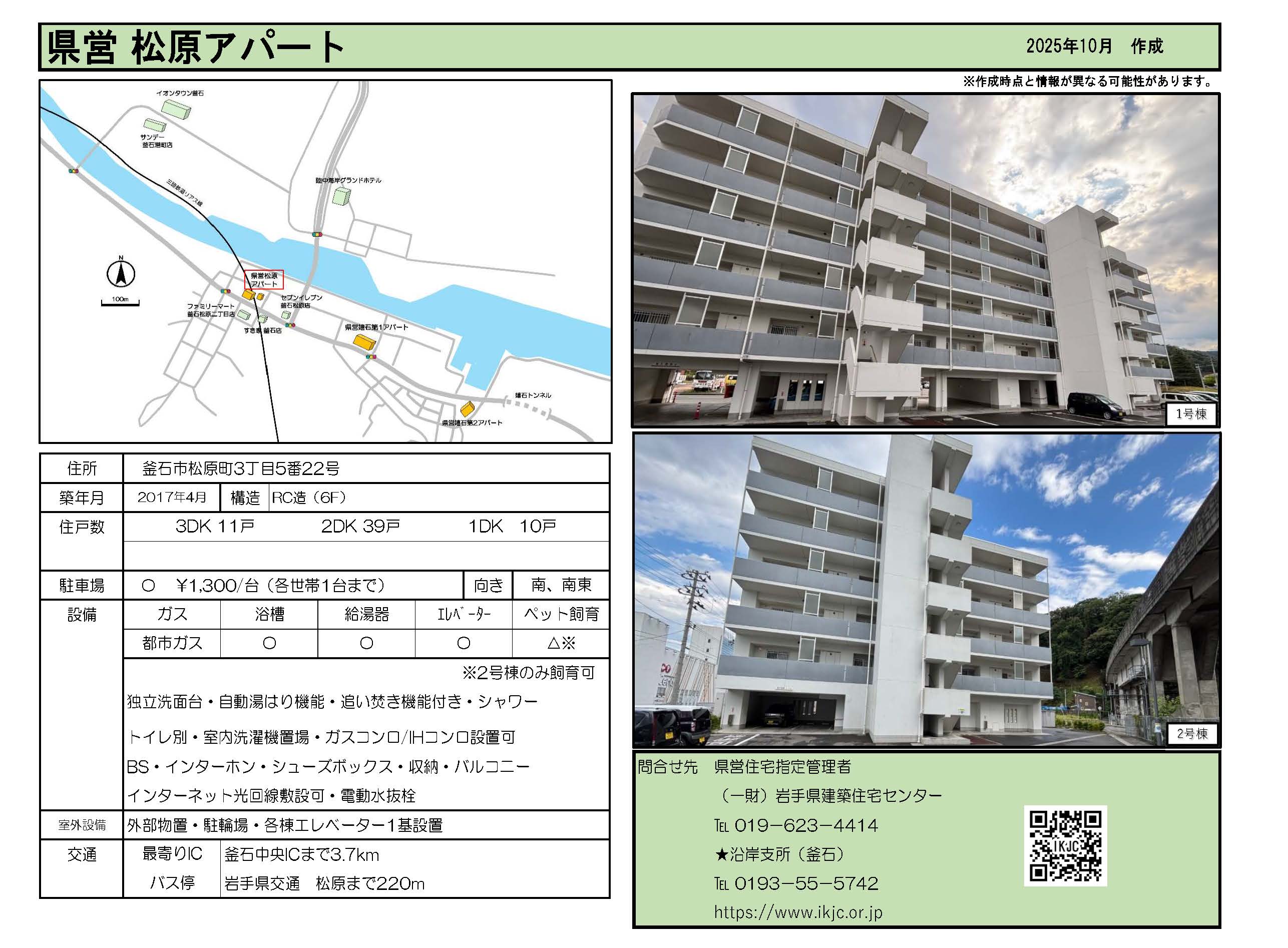 | 松原 | 6階建 | 1DK 2DK 3DK | 有 | 釜石市松原町3丁目5番22号 | ![]() |
