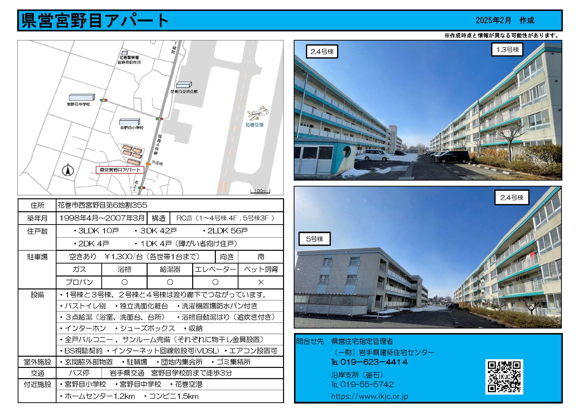 | 西ケ丘北 | 4階建 | 2LDK 3DK | 無 | 宮古市西ヶ丘3丁目9番 | ||