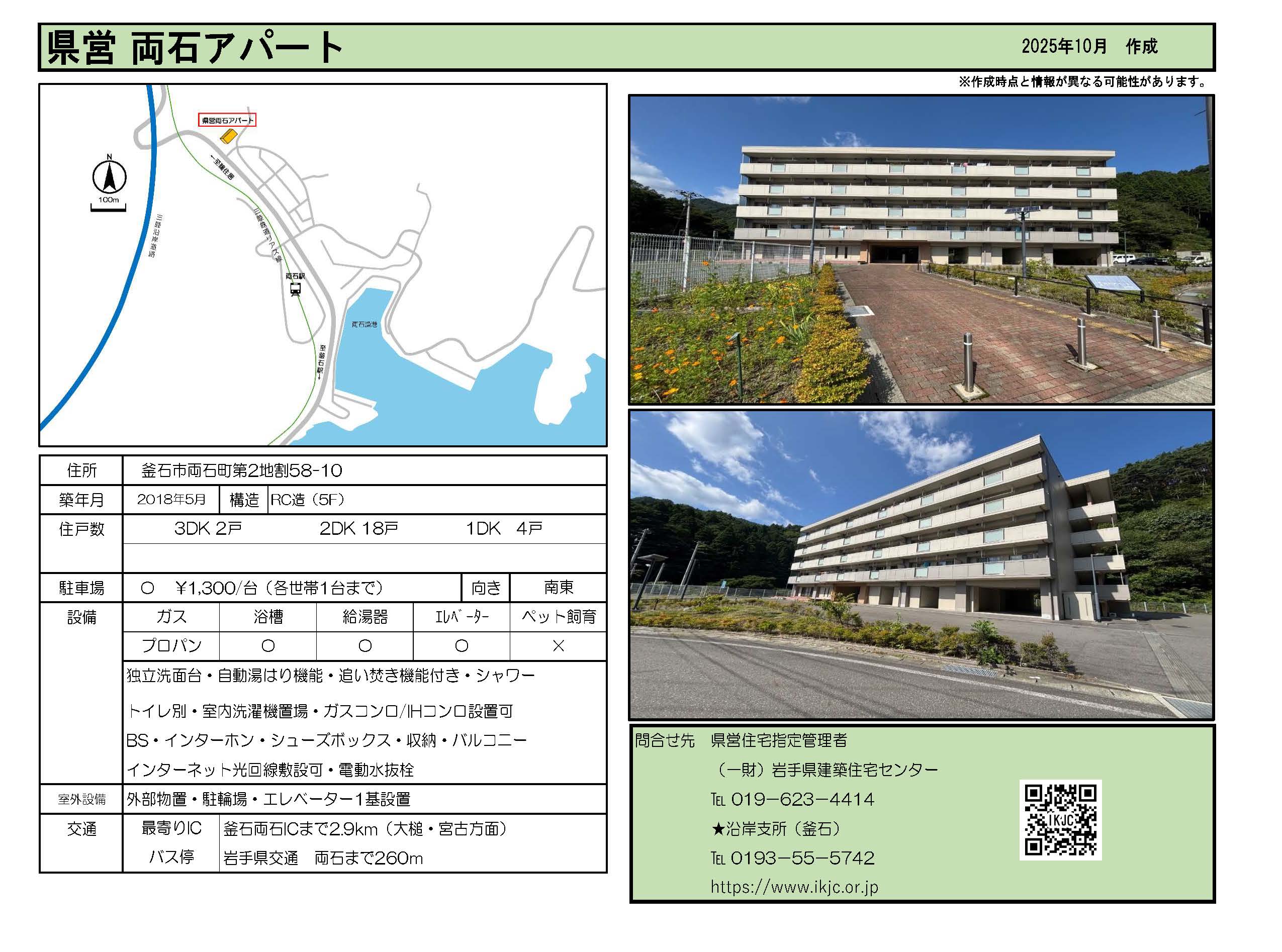 | 両石 | 5階建 | 1DK 2DK 3DK | 有 | 釜石市両石町第2地割58-10 | ![]() |