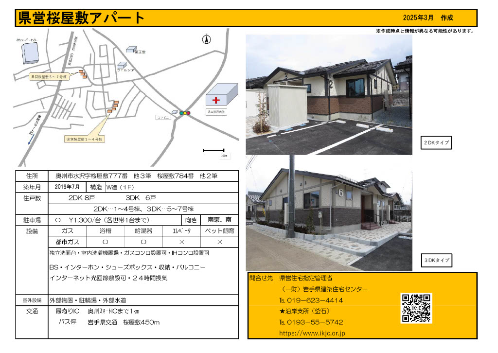 | 桜屋敷 | 1階建 | 2DK 3DK | 無 | 奥州市水沢字桜屋敷 | ![]() |