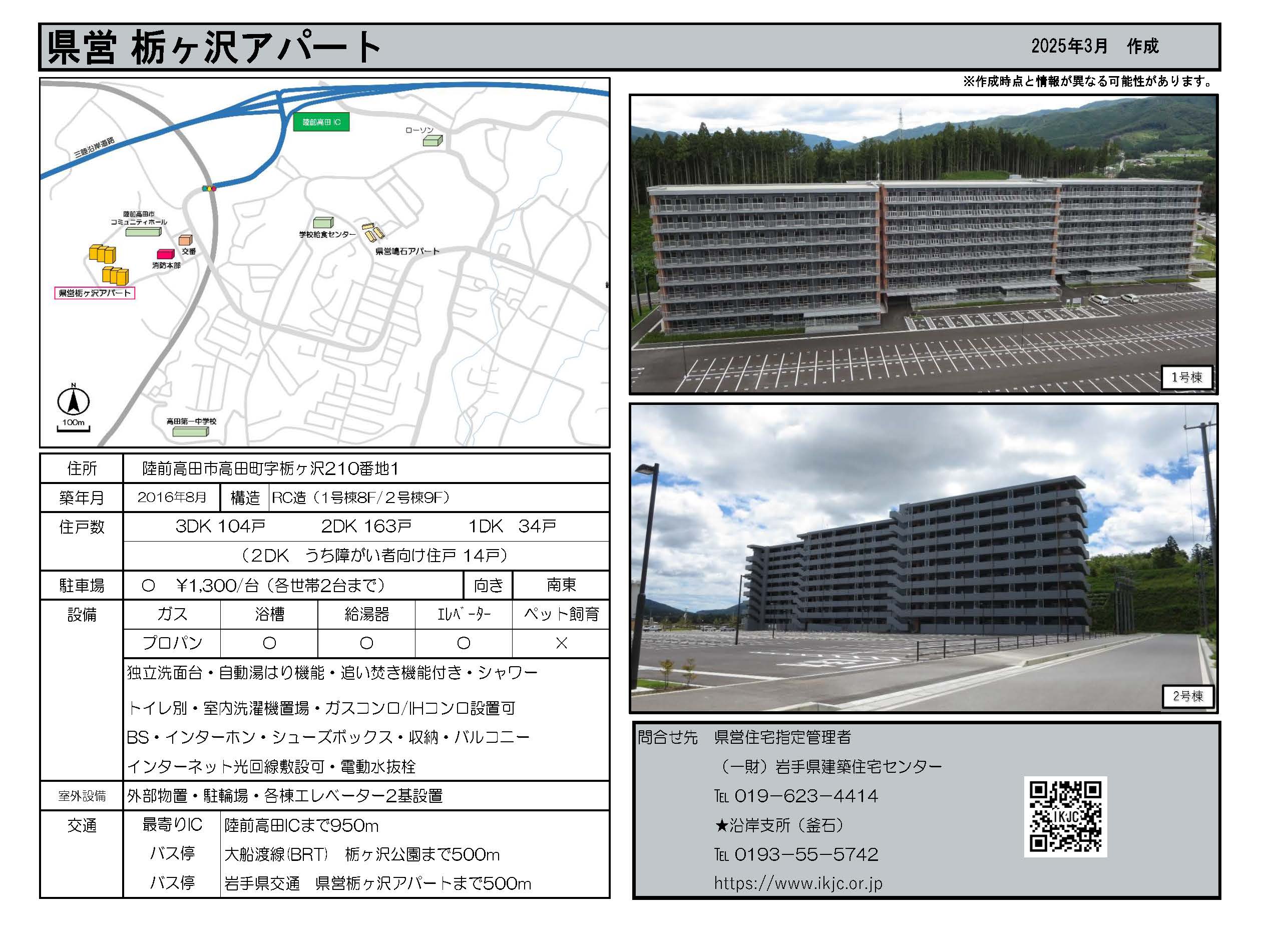 | 赤沢 | 4階建 | 2LDK 3DK | 無 | 大船渡市大船渡町山馬越64番地3 | ||